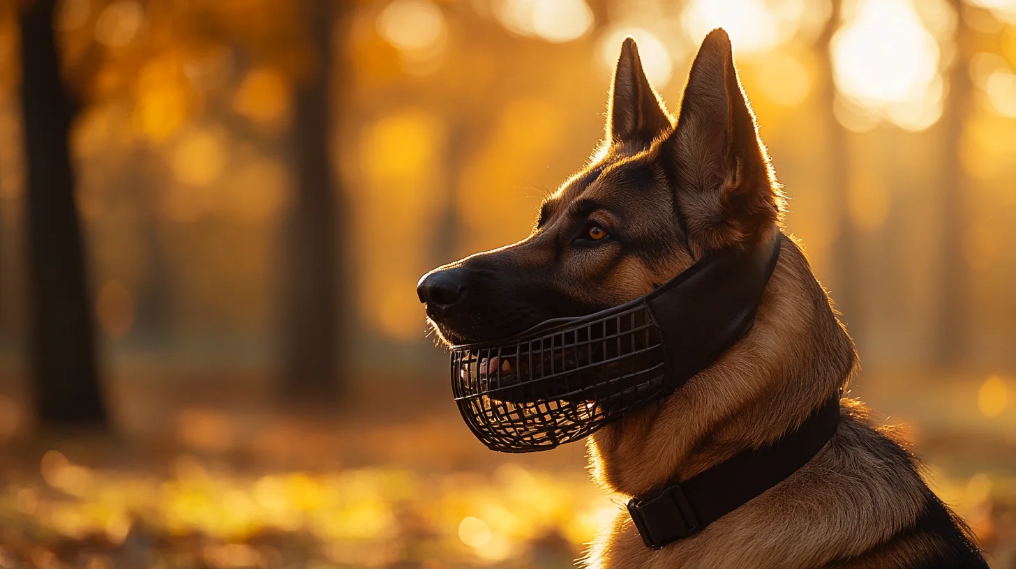 For photographability, a well-fitted basket muzzle in a neutral color (black, dark brown, or cream/nude depending on your dog's coat) is ideal. Baskerville Ultra muzzles, BUMAS custom-fit muzzles, and leather-wrapped basket muzzles all photograph cleanly. What you want to avoid for photography purposes — though safety always wins — are brightly colored vinyl muzzles, muzzles with large branding, and soft fabric muzzles (which compress the dog's face and produce unflattering proportions).